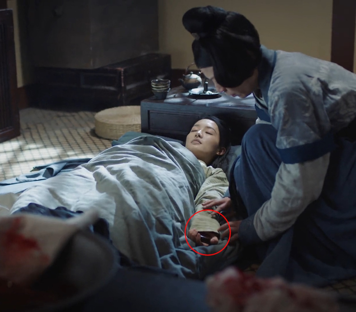 Trong một cảnh khác, Ly Ca bị bất tỉnh, chiếc vòng được cầm chặt ở tay. Cô chưa tỉnh nhưng tư thế cầm chiếc vòng lại có sự thay đổi.