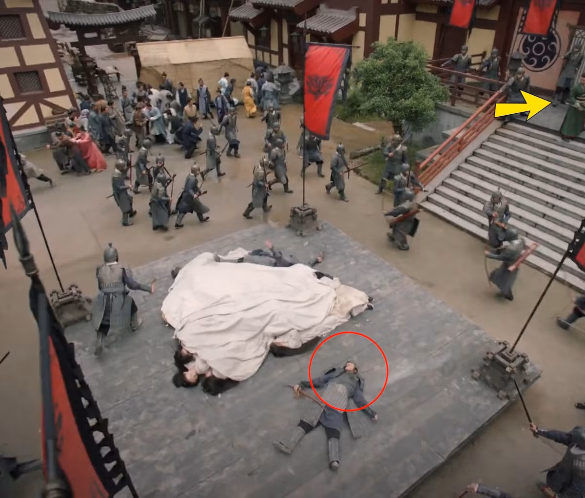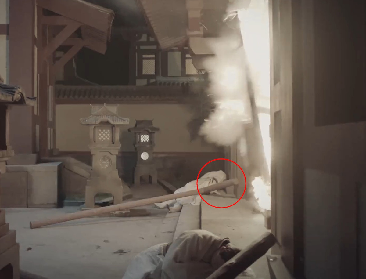 Cũng trong Cẩm Tú Nam Ca, trong cảnh phủ bị tấn công, vốn có những người hầu dùng gậy chắn cửa, không cho quân địch vào. Tuy nhiên, sau đó, những cây gậy đột nhiên biến mất như có người di chuyển.