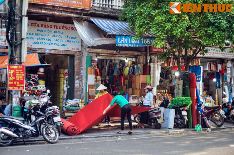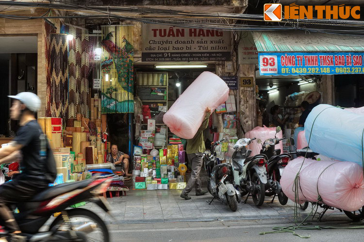 Các mặt hàng khác được chuyên danh trên phố Hàng Chiếu là phông bạt, túi nylon, dây dù, dây thừng, chăn nệm, thảm trải sàn...