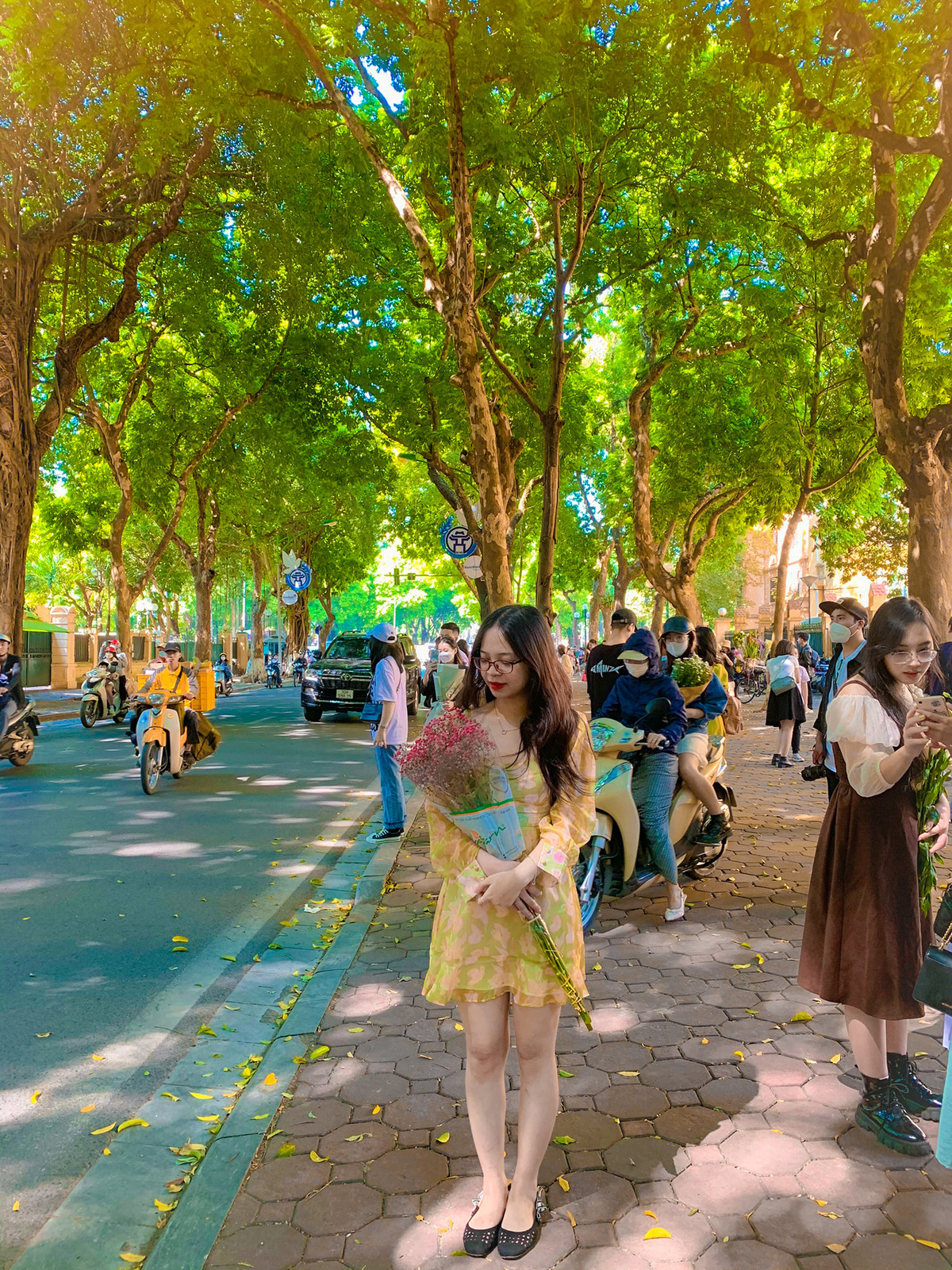Xe hoa trở thành điểm check in đặc trưng cho bộ ảnh mùa thu Hà Nội, đặc biệt trên con đường này xuất hiện khá nhiều. Ảnh: Đỗ Bích Thùy