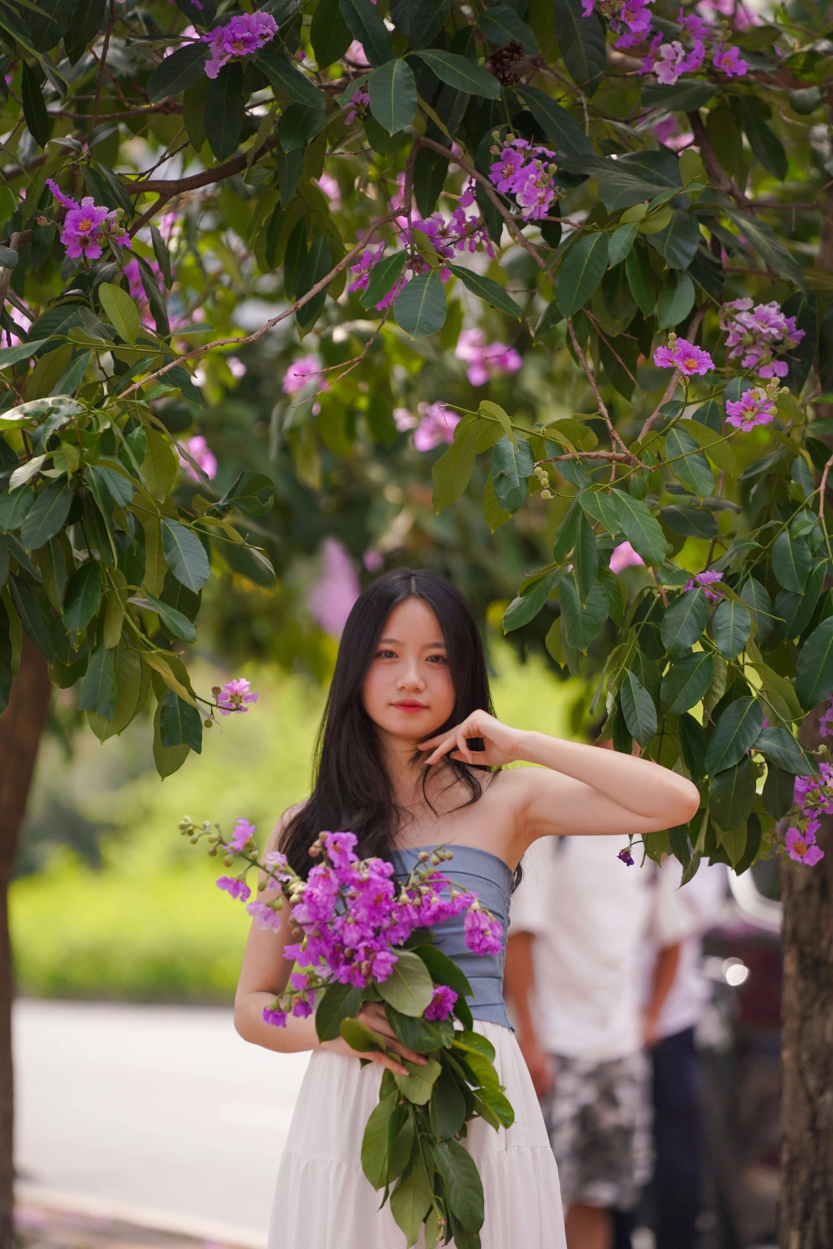 Ven các con phố của Hà Nội có hoa bằng lăng, nhiều người dân ghi lại hình ảnh của mình và bạn bè với hoa bằng lăng.