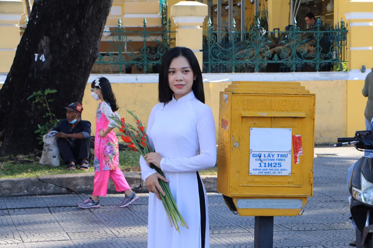 Tại khu vực trung tâm TPHCM như: Bưu điện trung tâm, Nhà thờ Đức Bà,... từ sáng sớm, nhiều bạn trẻ đã xúng xính áo hoa đến để chụp ảnh, ghi lại khoảnh khắc đẹp ngày đầu năm mới.