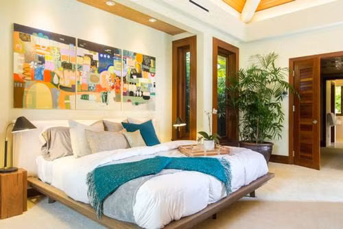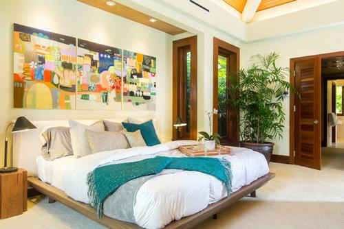 Đặt những chậu cây nhỏ ở góc phòng hay cạnh cửa sổ là những vị trí lý tưởng trong phòng ngủ. Bạn cần chú ý kết hợp màu sắc của đồ nội thất trong phòng ngủ như giường ngủ, đèn, bàn ghế cùng màu sơn tường và trần nhà để tạo điểm nhấn thú vị và độc đáo hơn cho căn phòng.