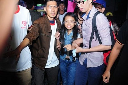 | Bố mẹ Mỹ Chi tạm gác lại công việc bán chè để đi cùng con gái trong chuyến lưu diễn tại Hà Nội. |