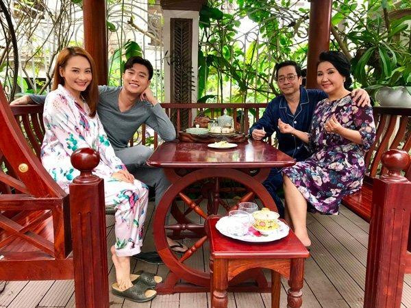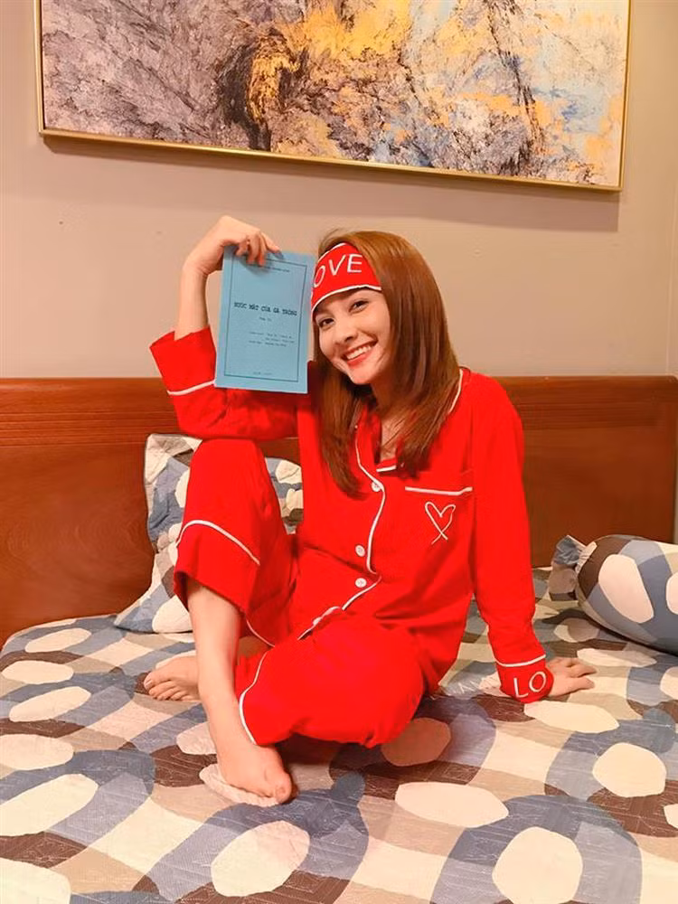 Nàng “Minh” đầy mạnh mẽ, quyết đoán trong phim “lột xác” thành một người phụ nữ của gia đình với vẻ dịu dàng, thanh lịch trong bộ pyjama lụa mặc ở nhà.