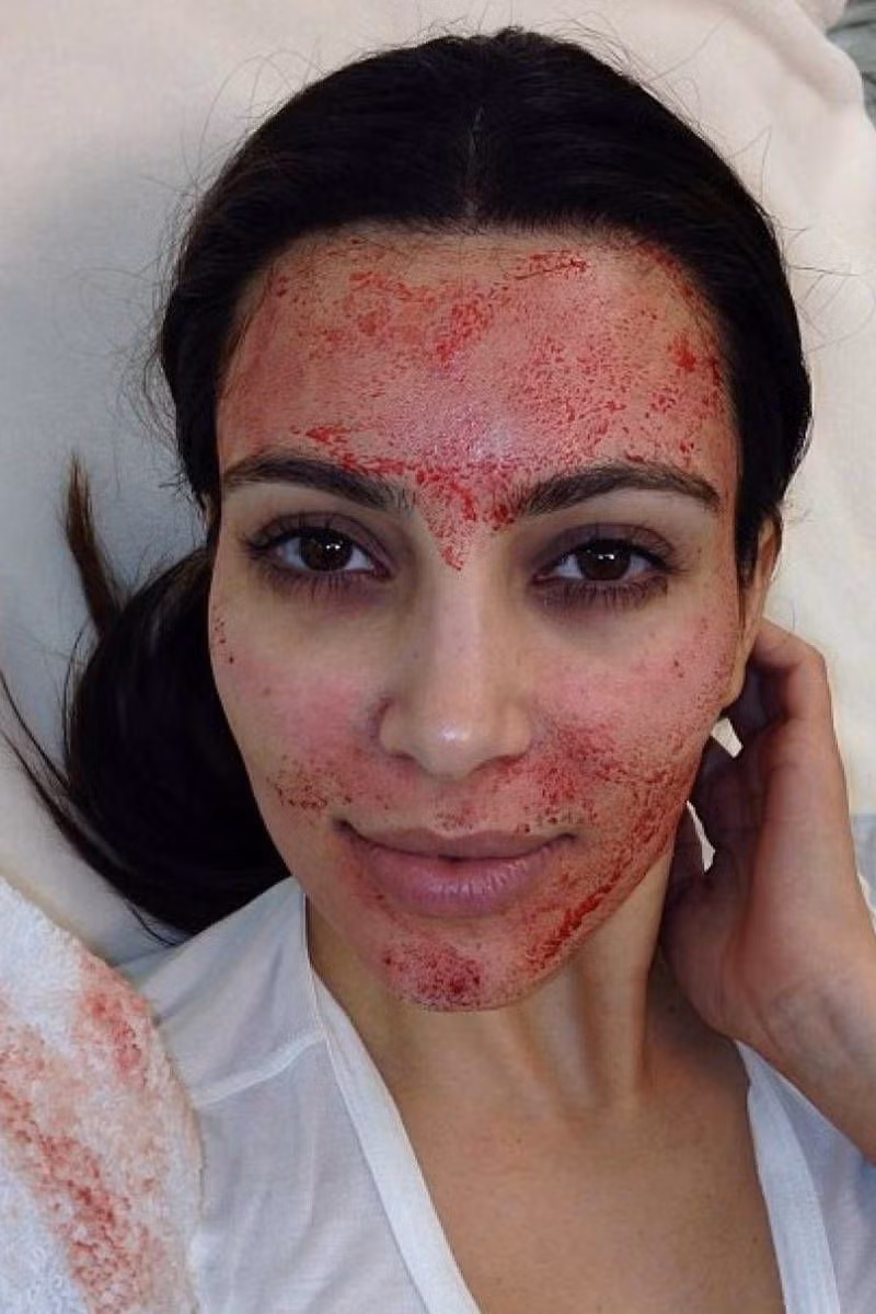 Kim Kardashian: "Nữ hoàng thị phi" của Hollywood từng khiến cộng đồng mạng xôn xao khi chia sẻ hình ảnh làm đẹp bằng máu tại cơ sở thẩm mỹ. Phương pháp này được gọi là "Vampire facial" (tạm dịch: Chăm sóc da theo kiểu ma cà rồng). Theo đó, nhân viên spa sẽ lấy phần huyết tương được tách từ máu trong máy ly tâm của chính người muốn thực hiện để lăn lên da mặt. Dù có vẻ khá ghê rợn, cách làm này được cho là có tác dụng kích thích quá trình sản sinh collagen, tái tạo da và làm chậm quá trình lão hóa. Ảnh: @kimkardashian.