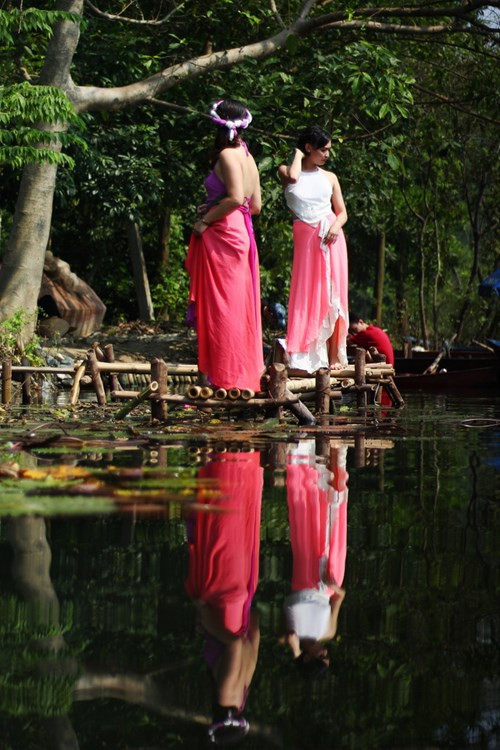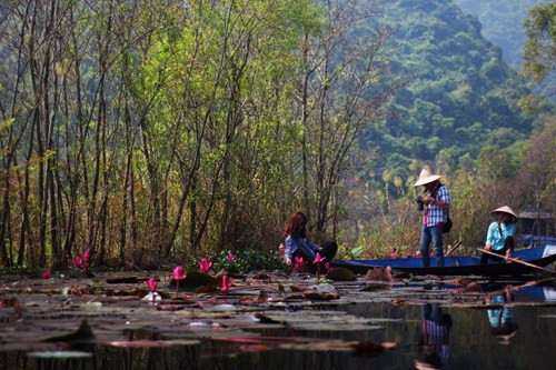 Phượt chùa Hương “săn” hoa súng nở hồng rực trên suối Yến