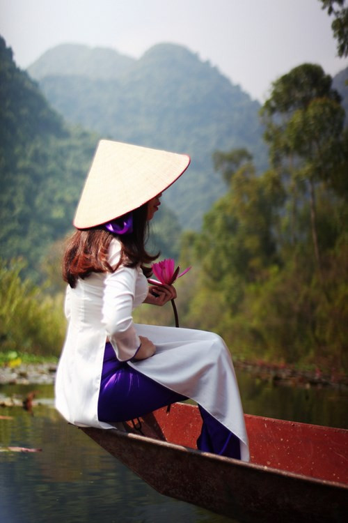 Nhiều cô gái trẻ còn chuẩn bị sẵn áo dài, áo tứ thân để chụp cùng hoa súng.