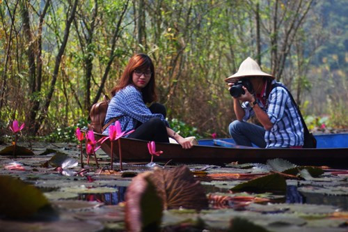 Họ hầu như đều thuê thuyền đi chụp từ sáng sớm để thưởng thức hết các góc độ của hoa súng từ khi mặt trời mới mọc đến khi có ánh nắng rực rỡ.
