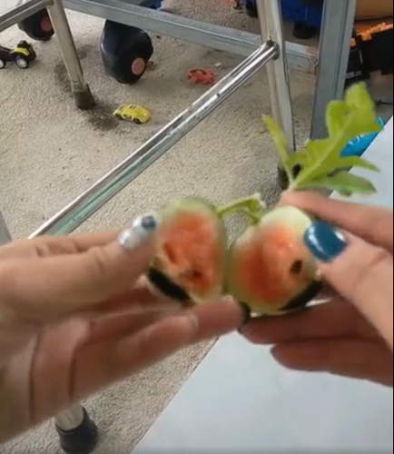 Dường như vì kích thước quá nhỏ nên vỏ của quả dưa hấu mini này cũng mỏng hơn các loại dưa khác.