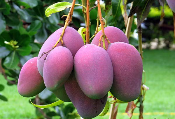 Khi cây xoài này còn xanh thì vỏ ngoài của nó có màu tím.