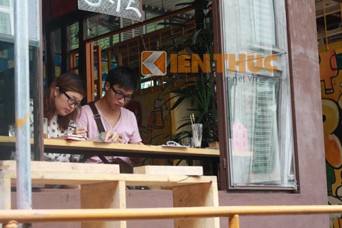 Khách đến đây hầu như là các bạn trẻ thích những không gian mới lạ mang tính sáng tạo. Họ đến quán không chỉ để ăn uống mà còn để ngắm nhìn không gian.