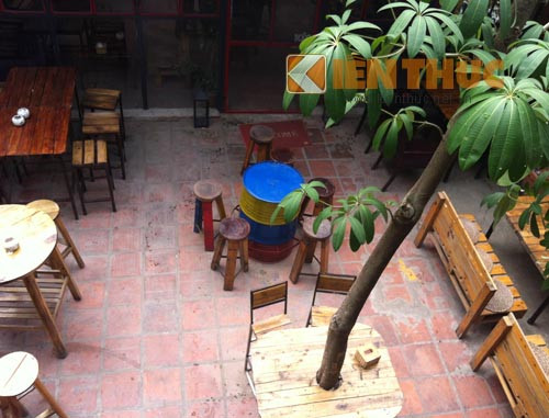 Theo chủ cửa hàng kinh doanh bia T +, để tiết kiệm tối đa các chi phí khi mở quán, anh cùng với những người bạn của mình đã tự chế ra các loại bàn ghế bằng vật liệu từ các đồ bỏ đi. Những vật liệu này được tận dụng từ các loại lốp xe, thùng phuy, lô quấn cáp điện, thùng hàng bằng gỗ...