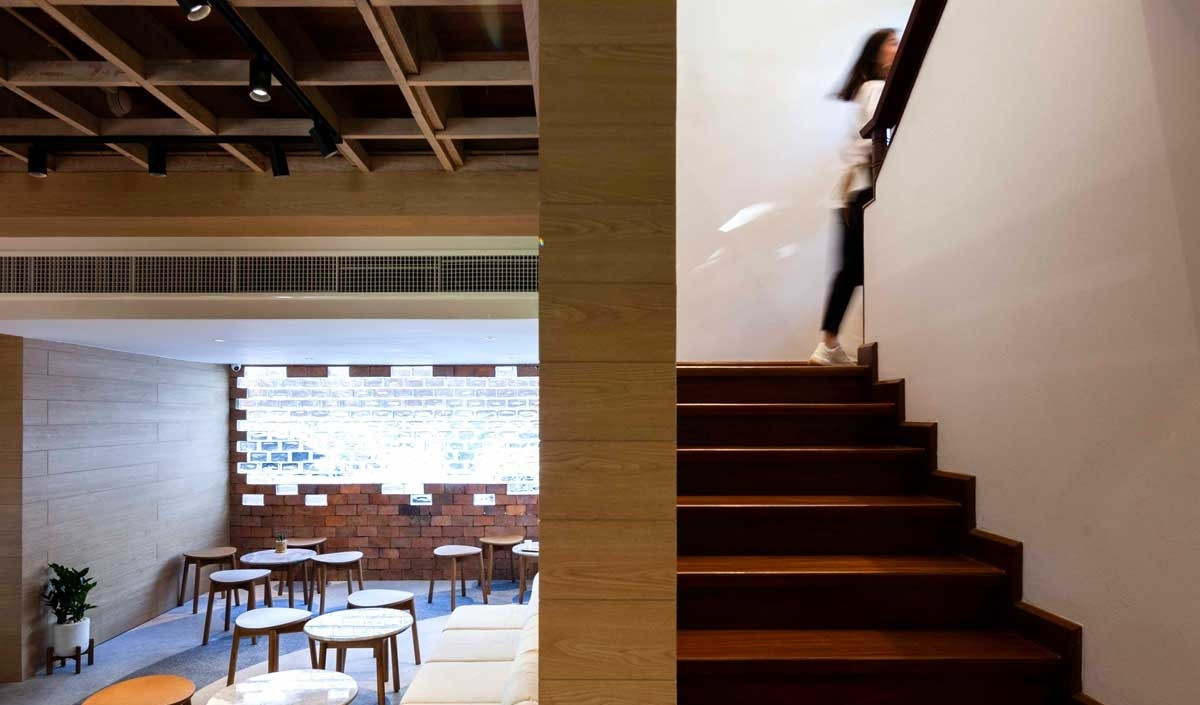 Không gian 2 tầng bên trong được kết cấu bằng khung gỗ.