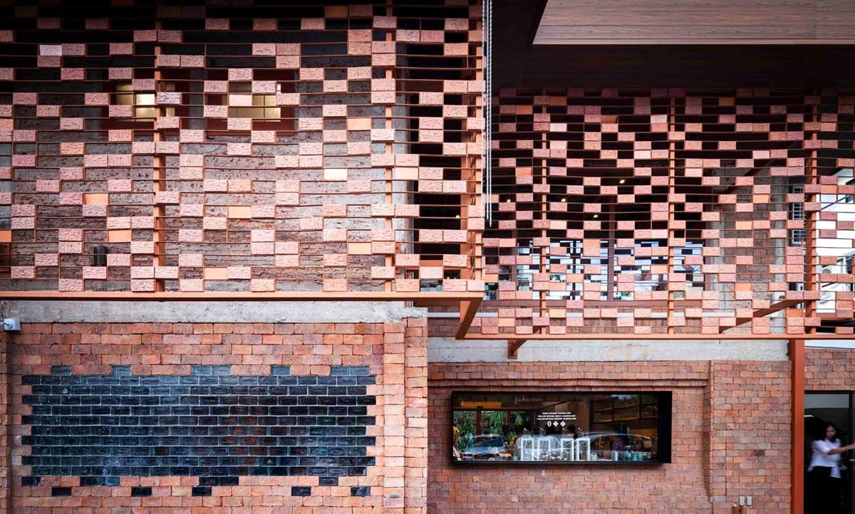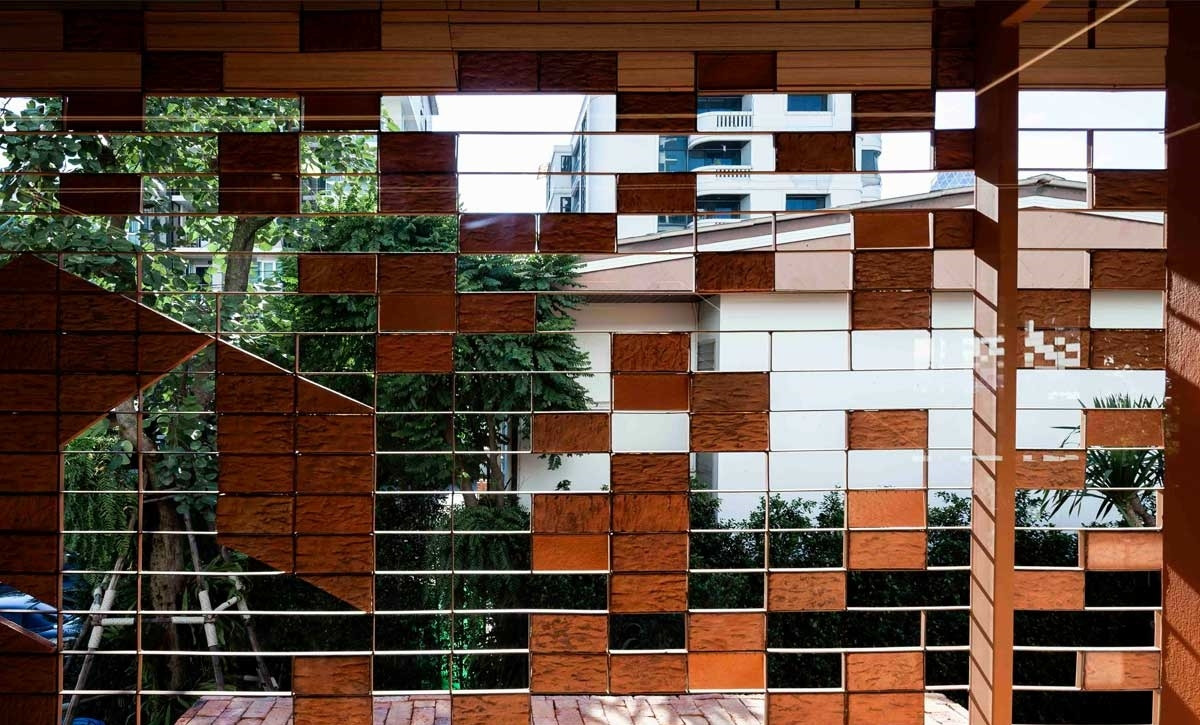 Ngôi nhà có cách ốp gạch đặc biệt khiến không gian tràn ngập ánh sáng. Xung quanh là một khu vườn, các tiểu cảnh xanh mát giúp khách hàng cảm giác được gần gũi, thư thái, tránh xa nơi xô bồ, nhộn nhịp của phố thị.