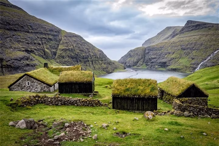 Nét độc đáo của Faroe chính là những ngôi nhà cổ kính với mái ngói trồng cỏ xanh tươi tốt. Dọc theo các con đường ngoằn ngoèo, du khách có cơ hội được chiêm ngưỡng và "chụp ảnh đến mỏi tay" trước nhiều ngôi nhà đặc biệt này. Kiểu dáng nhà được người dân xứ Faroe xây dựng cách đây hàng nghìn năm nhằm bảo vệ mọi thứ bên trong khỏi sự ẩm ướt của những cơn mưa. Trải qua bao năm tháng cùng thăng trầm của lịch sử, các ngôi nhà trồng cỏ xanh trên mái ở Faroe vẫn tồn tại và trở thành một trong những biểu tượng của hòn đảo.