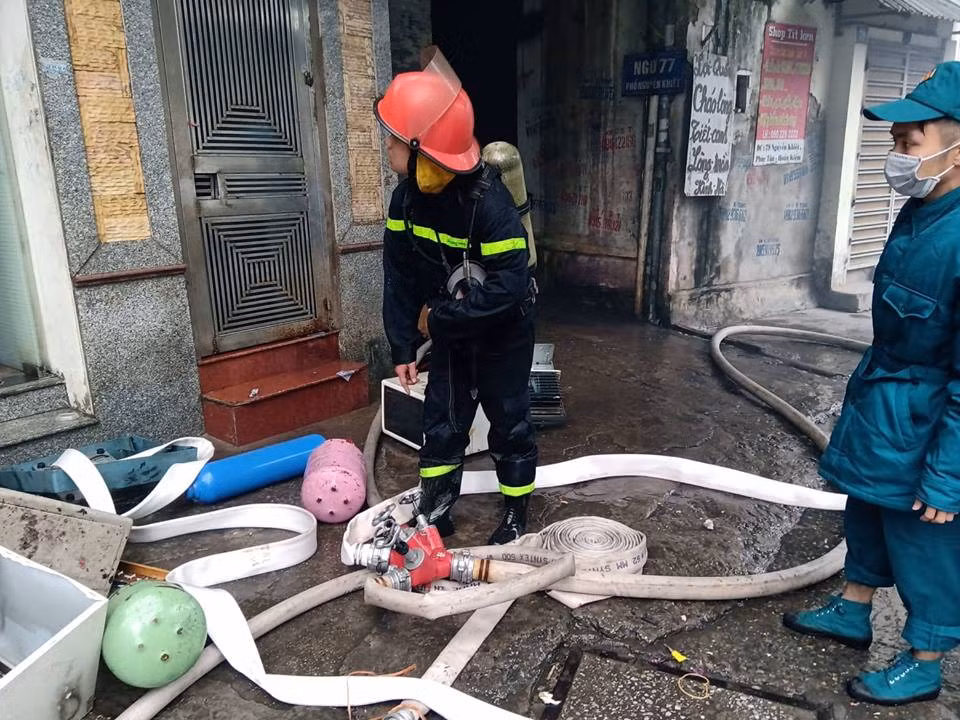 Do vụ cháy xảy ra trong ngõ nhỏ nằm sâu trong khu dân cư nên việc chữa cháy gặp rất nhiều khó khăn.