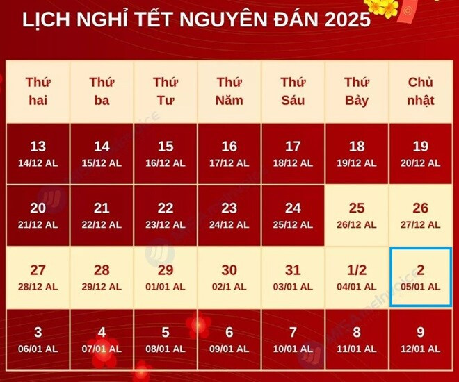 Theo lịch nghỉ Tết Nguyên đán năm nay, người dân bắt đầu được nghỉ từ ngày 26 Âm lịch (tức 25/1/2025) đến hết ngày mừng 5 tháng Giêng (tức ngày 2/2/2025), quay trở lại làm việc vào ngày 3/2/2025. Theo như lịch nghỉ Tết trên, nhiều người sẽ phải di chuyển từ quê về các đô thị lớn vào ngày 5 tháng Giêng. Tuy nhiên, không ít người cho rằng, đây là ngày xuất hành sẽ gặp nhiều điều bất lợi, vì thế nên kiêng tránh.
