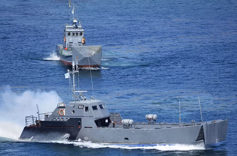 Tàu đổ bộ hiện đại Project 21980 tham gia tập trận.