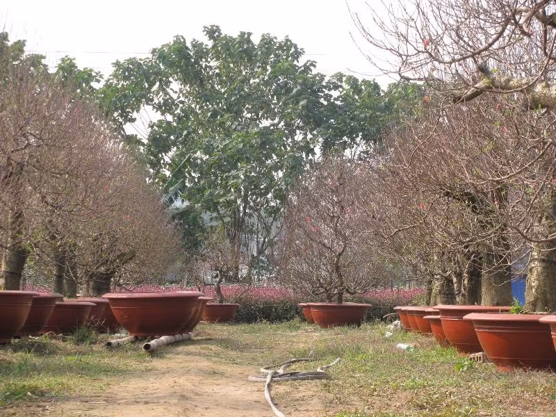 | Những gốc đào có giá khoảng 10 triệu đồng của một chủ vườn đào ở Nhật Tân. Ảnh: Hải Sơn. |