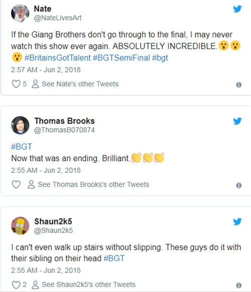 | Quốc Cơ - Quốc Nghiệp khiến khán giả Việt Nam tự hào bởi màn trình diễn ấn tượng trong vòng 1 của chương trình Britain's Got Talent. |
