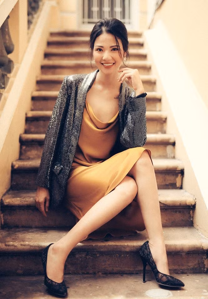 Với chiều cao 1,75m, cô xuất thân là một vận động viên bóng chuyền đến từ Hải Phòng.