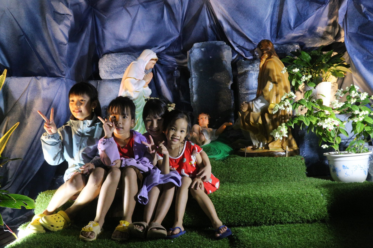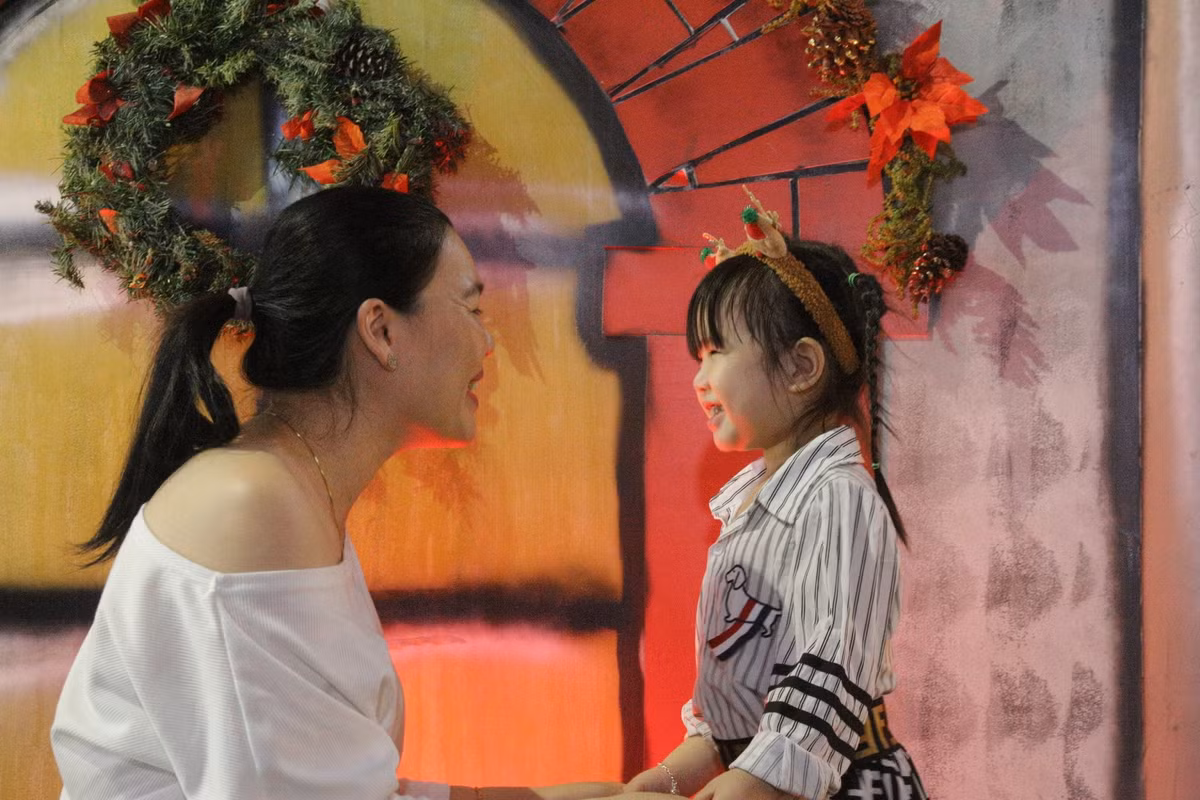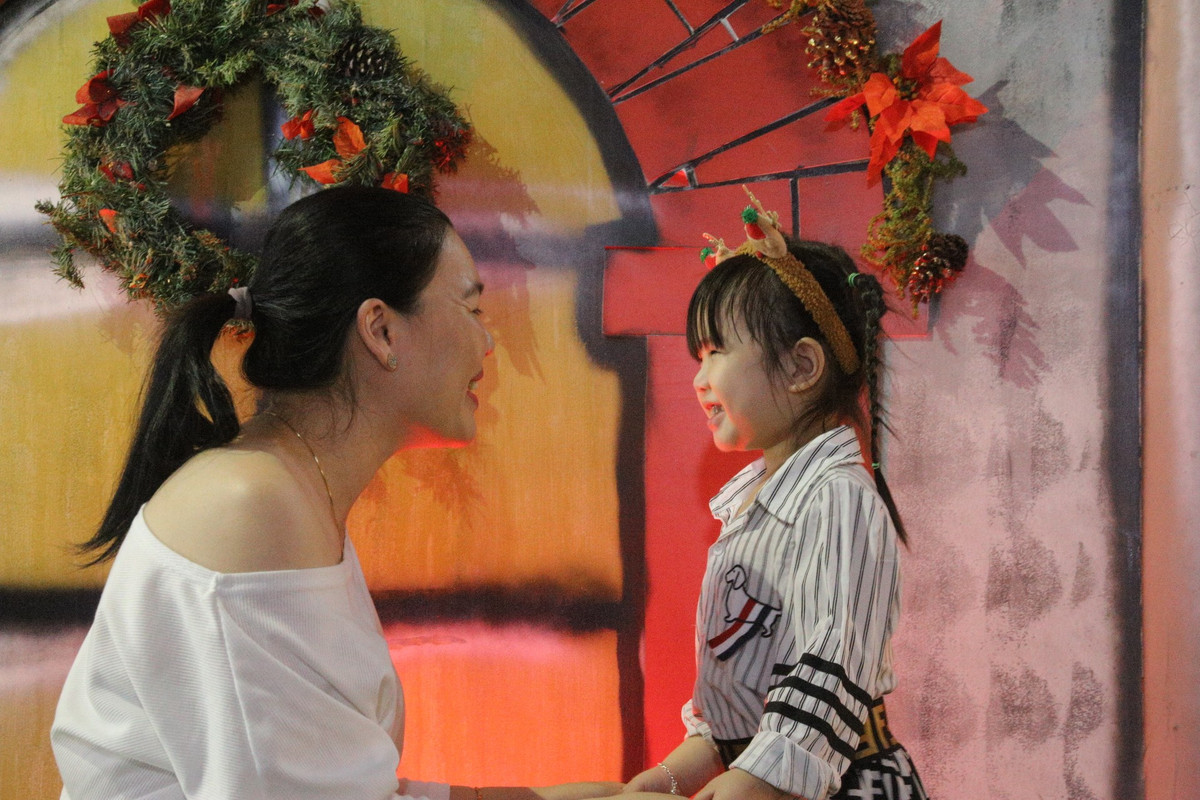 Nhiều trẻ em được gia đình đưa đi chụp ảnh, vui chơi Giáng sinh sớm.