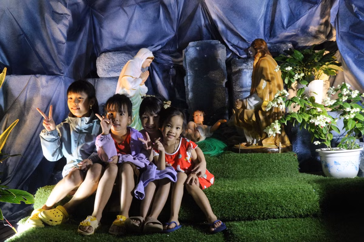 Các em nhỏ được gia đình đưa đi chơi Noel sớm rất thích thú, vui vẻ.