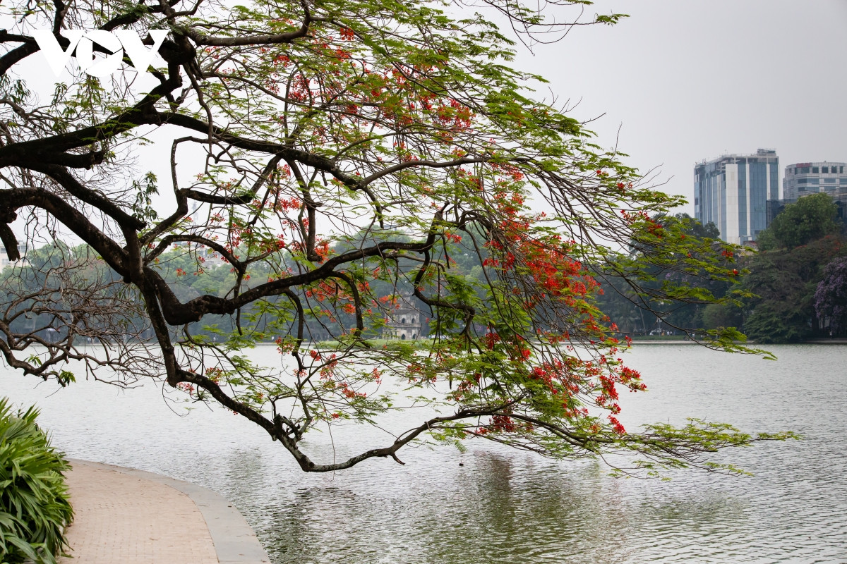 Chùm hoa khoe sắc rực rỡ dưới nắng hè bên hồ Hoàn Kiếm, tạo điểm nhấn ấn tượng, khó quên.