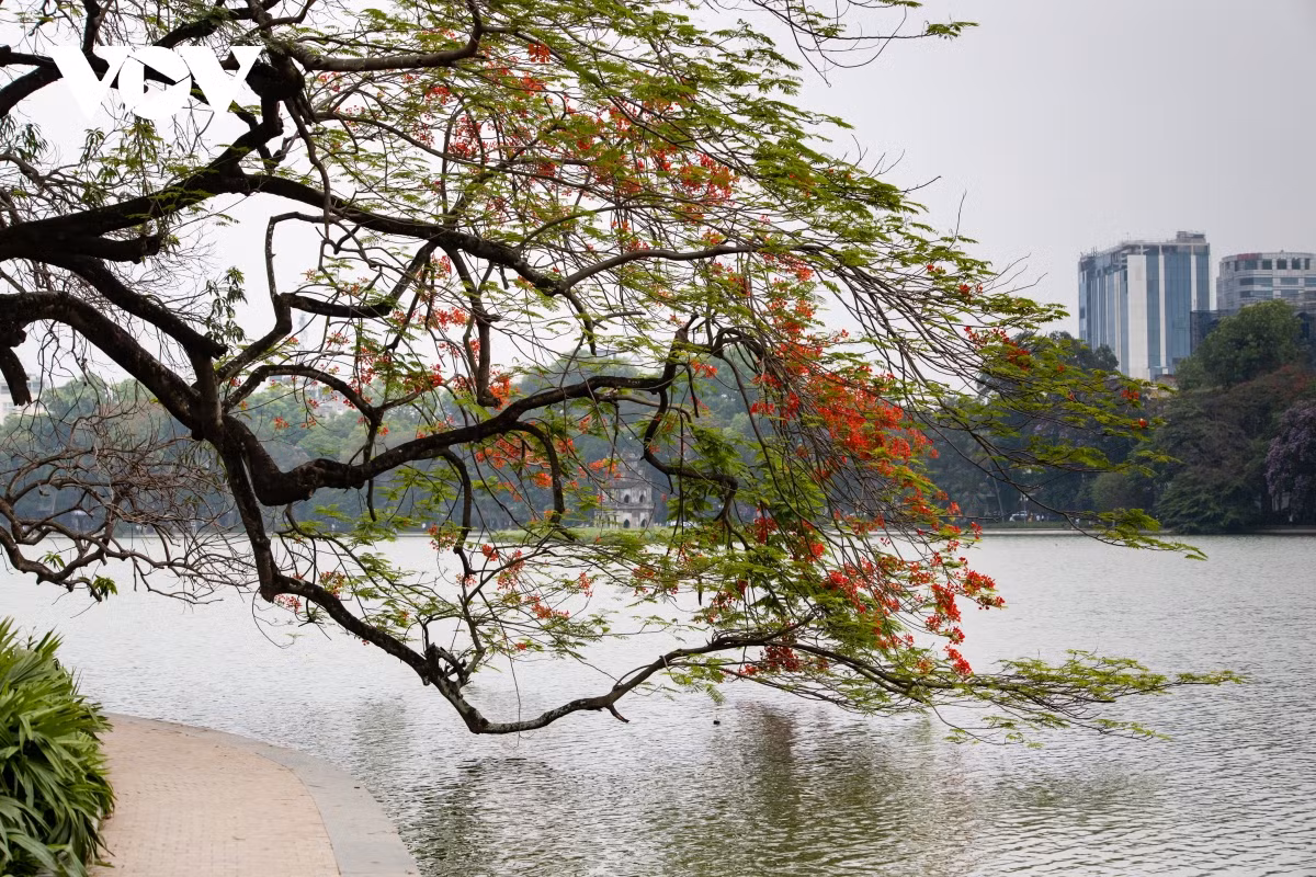 Chùm hoa khoe sắc rực rỡ dưới nắng hè bên hồ Hoàn Kiếm, tạo điểm nhấn ấn tượng, khó quên.