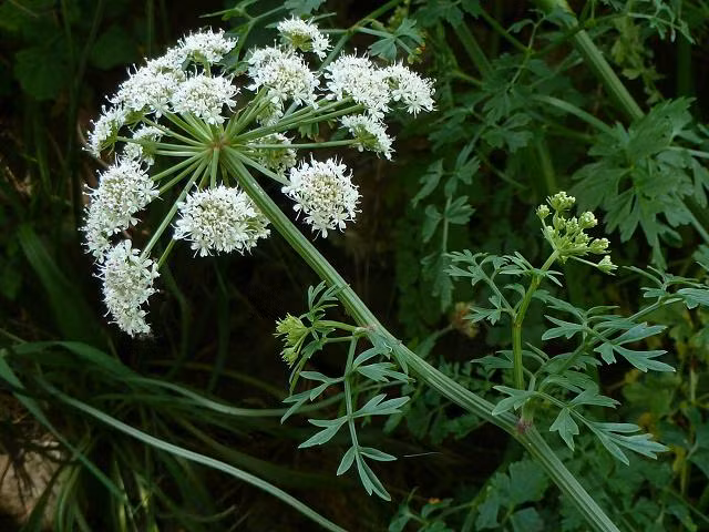 Đây là cây độc cần nước, tên khoa học là Conium maculatum, còn có tên gọi khác là cây râu quỷ, cây hải ly độc. Chỉ ăn vào một chút, nạn nhân sẽ trúng độc nặng dẫn đến mất mạng nhanh chóng.