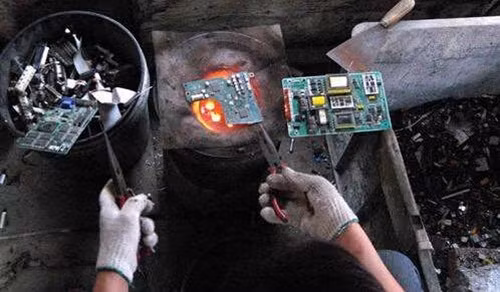 Thông thường, họ sẽ làm nóng bảng mạch của những chiếc điện thoại di động, các thiết bị điện tử cũ, hỏng để tách lấy kim loại đồng. Sau đó lại làm ướt và sử dụng axit mạnh để tách lấy kim loại khối khác.