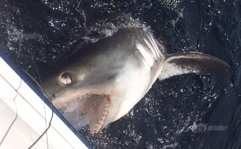 Sau khoảng hơn 1 tiếng, con cá mập to gấp đôi người lớn đã bị khuất phục, nằm sõng soài trên khoang. “Loài này to xác thế nhưng khi bị thương mất máu thì rất yếu.
