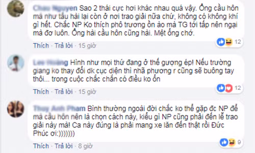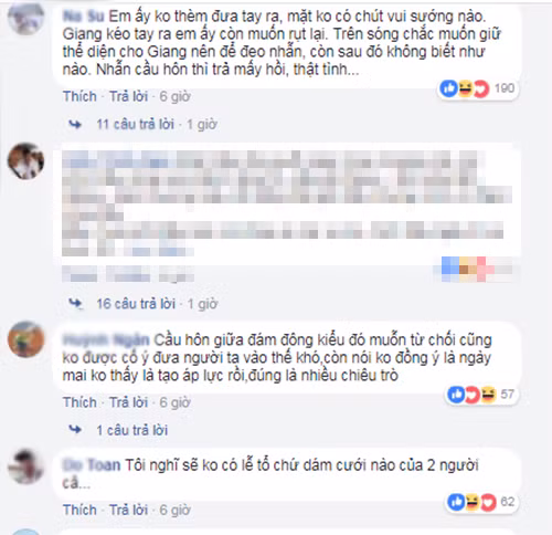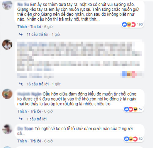 | Fans cho rằng Nhã Phương miễn cưỡng nhận lời cầu hôn. |