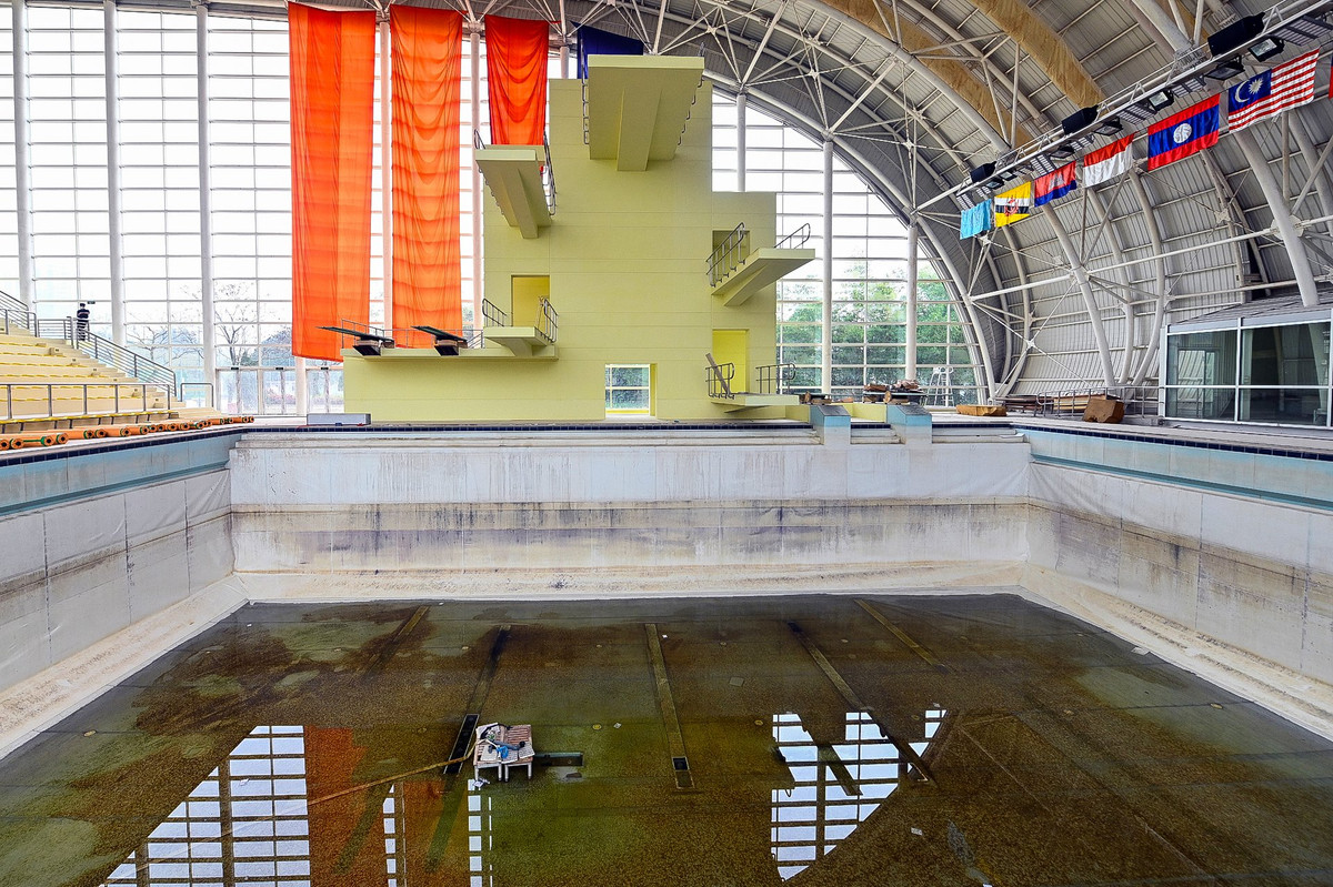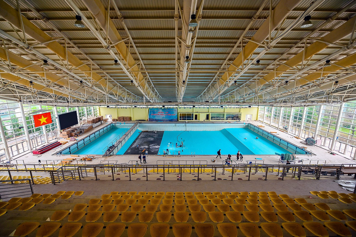 Tại Cung Thể thao dưới nước (quận Nam Từ Liêm) đến nay vẫn còn ngổn ngang khi công tác sữa chữa, nâng cấp chưa được hoàn thiện dù SEA Games 31 đang đến gần.