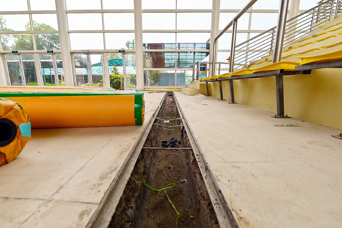Nhà thi đấu Gia Lâm đã hoàn thành đến 80% các hạng mục chỉnh trang.