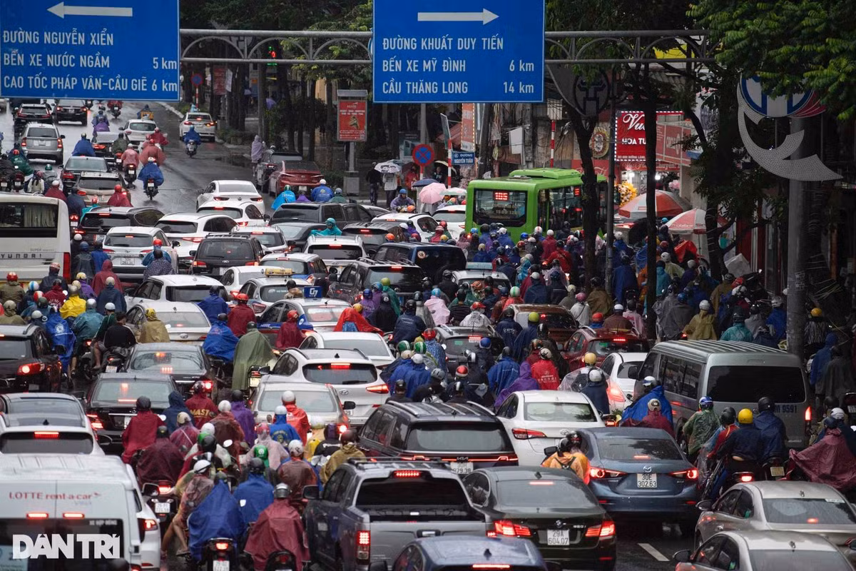 Mưa rét cũng là nguyên nhân gây ùn tắc giao thông trên nhiều tuyến phố như Tây Sơn, Chùa Bộc, Nguyễn Trãi... Người tham gia giao thông di chuyển chậm hơn, đặc biệt người điều khiển xe máy khi mặc áo mưa lùng bùng vướng víu, khó quan sát.