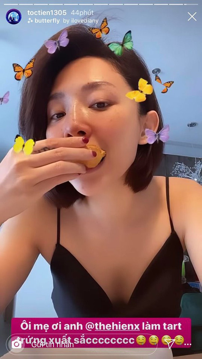 Không những chăm nấu ăn, Tóc Tiên còn dành nhiều thời gian trò chuyện với người hâm mộ. Cô bày tỏ sự vui vẻ khi có nhiều thời gian dành cho gia đình. Kể từ sau khi kết hôn, ca sĩ sinh năm 1989 chưa hoạt động nghệ thuật trở lại.