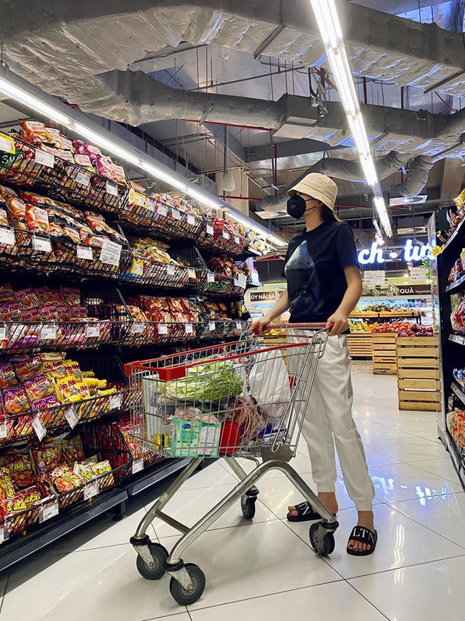 Sau khi chạy bộ, Kỳ Duyên - Minh Triệu đi siêu thị và ưu tiên mua rau xanh. Trên trang cá nhân, Hoa hậu sinh năm 1996 cho biết đây là lúc cô dành thời gian để chăm sóc bản thân sau cả năm bận rộn.