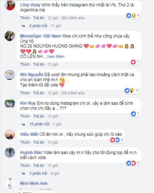 | Fans kêu gọi bình chọn cho Hương Giang. |