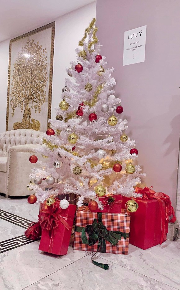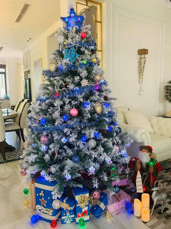 Cây thông của gia đình ca sĩ Hoàng Bách được trang trí khá lộng lẫy, hút mắt để đón Giáng sinh 2020.