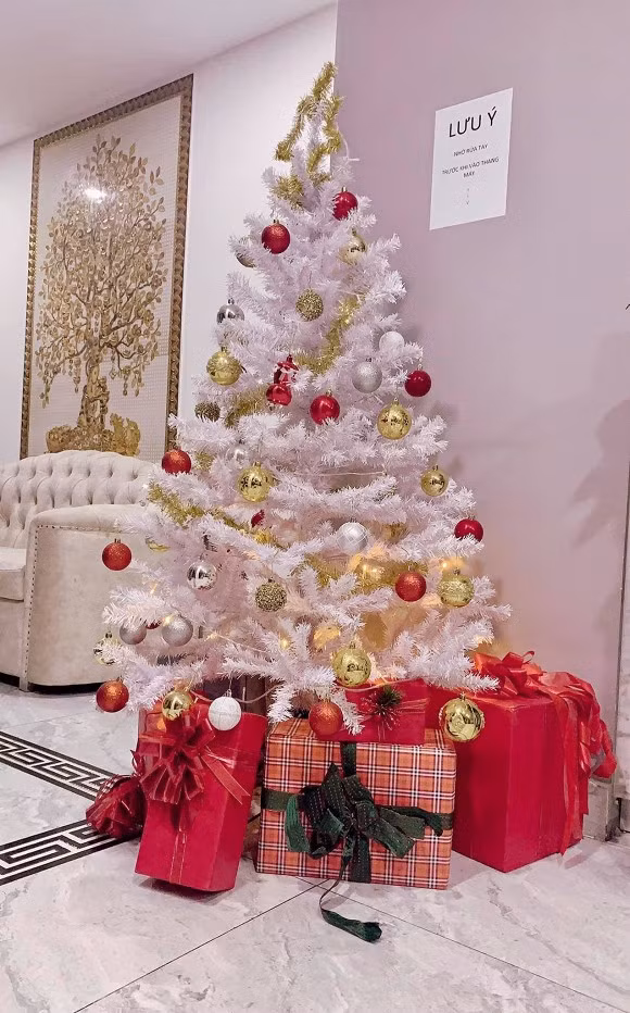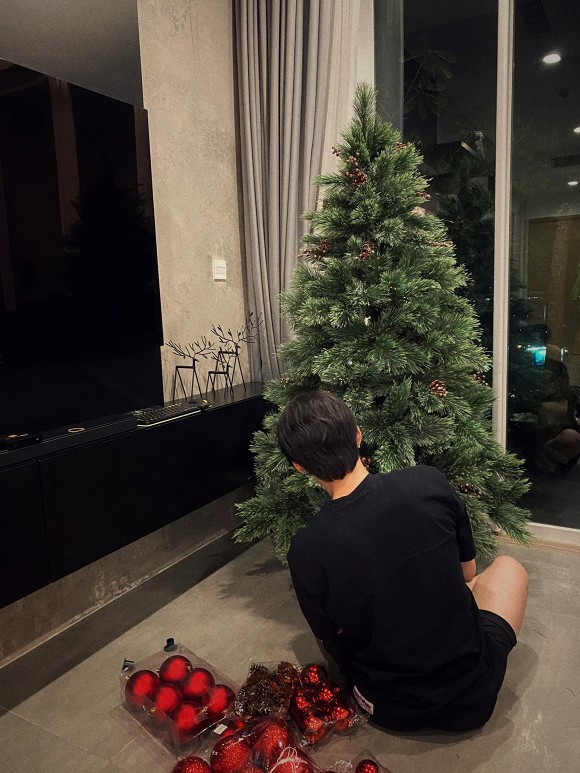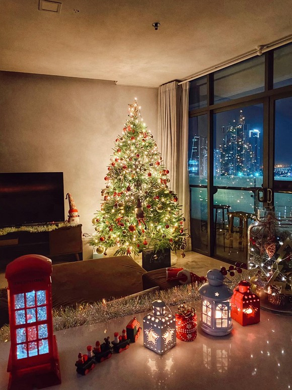 Chồng người mẫu Lê Thúy cũng đã hoàn tất việc trang trí cây thông có tông màu vàng trong căn hộ của mình.