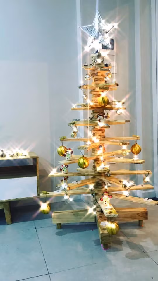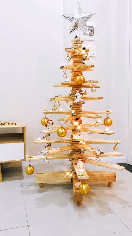 Cây thông được tạo nên từ gỗ, khi không dùng đến có thể gấp gọn.