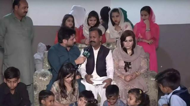 Ông Shaukat bên người vợ thứ 5 và các con, cháu.