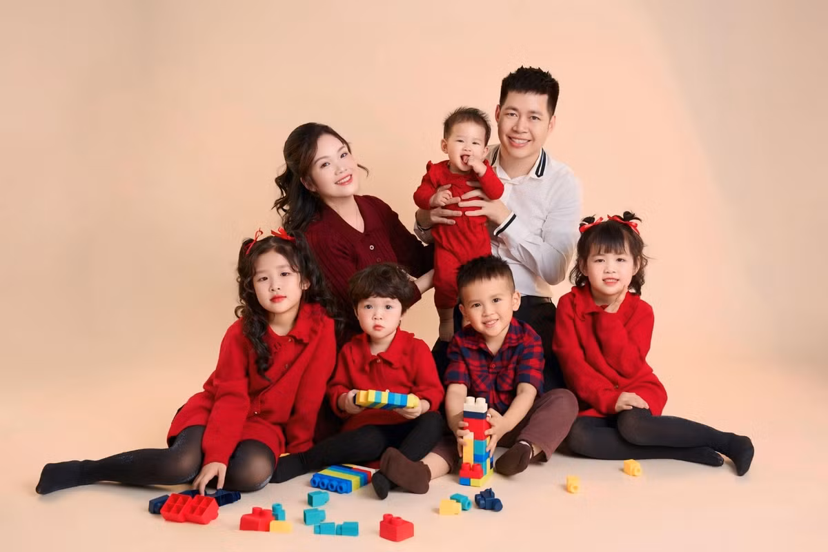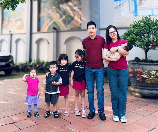 Năm 2018, vợ chồng chị Thủy đón bé đầu lòng sau một năm kết hôn. Từ đó đến nay, anh chị đã lên kế hoạch sinh liền 6 em bé. Không phải vì “nhỡ” hay cố có con trai, mà tất cả đều xuất phát từ mong muốn sinh nhiều con của hai vợ chồng. Anh chị đều là người thích trẻ nhỏ và muốn có nhiều em bé tạo không khí vui vẻ trong nhà.