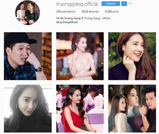 Một tài khoản lấy tên của Trường Giang thường xuyên đăng tải hình ảnh của Nhã Phương. Tài khoản này còn có cả chữ official (chính thức) như một cách để người xem ngầm hiểu đây là trang chính thống của danh hài.