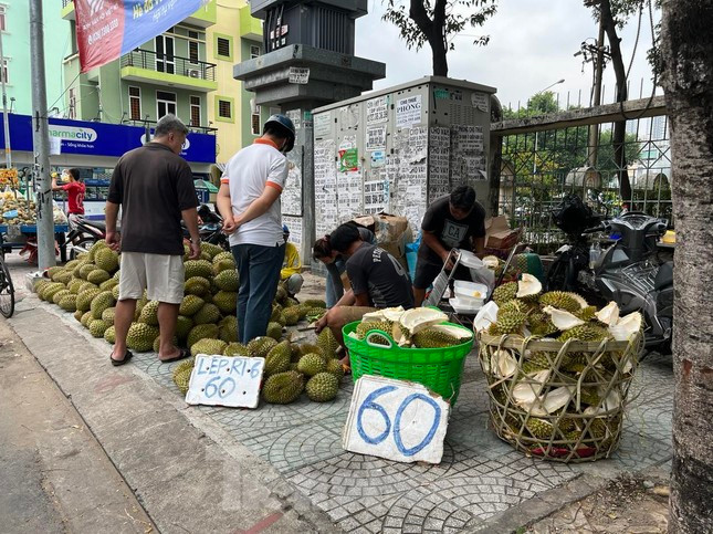 Ghi nhận của PV Tiền Phong sáng 23/5, trên nhiều tuyến đường trong thành phố như Nguyễn Văn Luông, Kinh Dương Vương (quận 6), An Dương Vương (quận Bình Tân), đại lộ Võ Văn Kiệt… sầu riêng được đổ đống trên vỉa hè được rao bán với giá rẻ bất ngờ.