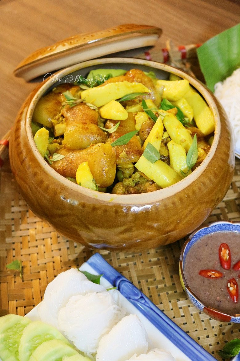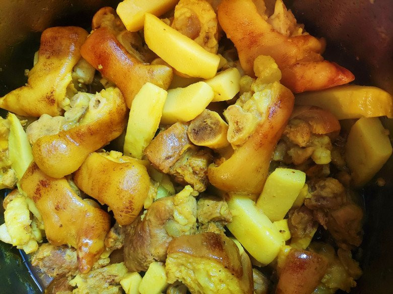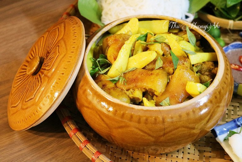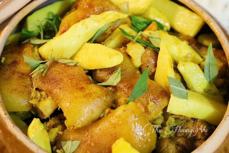 Đun sôi và vặn nhỏ lửa. Nấu lửa vừa tầm 15 phút cho móng và thịt ngấm, mềm (còn giữ độ giòn của thịt).