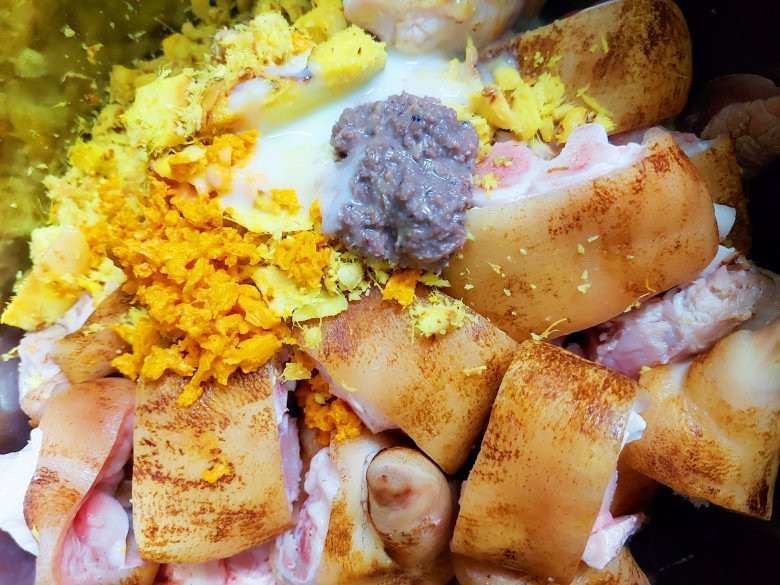 - Thịt chân giò, móng giò heo sát muối hạt rửa sạch.