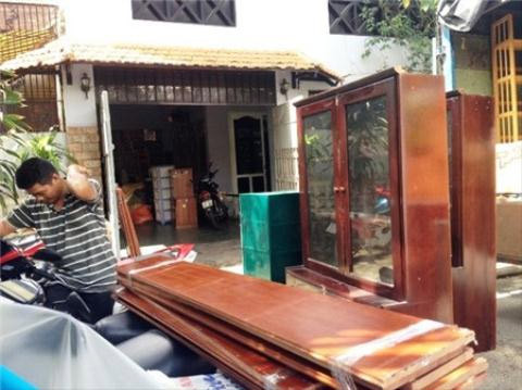 | Đồ đạc trong nhà nghệ sĩ Chánh Tín được xếp lên xe. (Ảnh: Phương Nguyễn). |